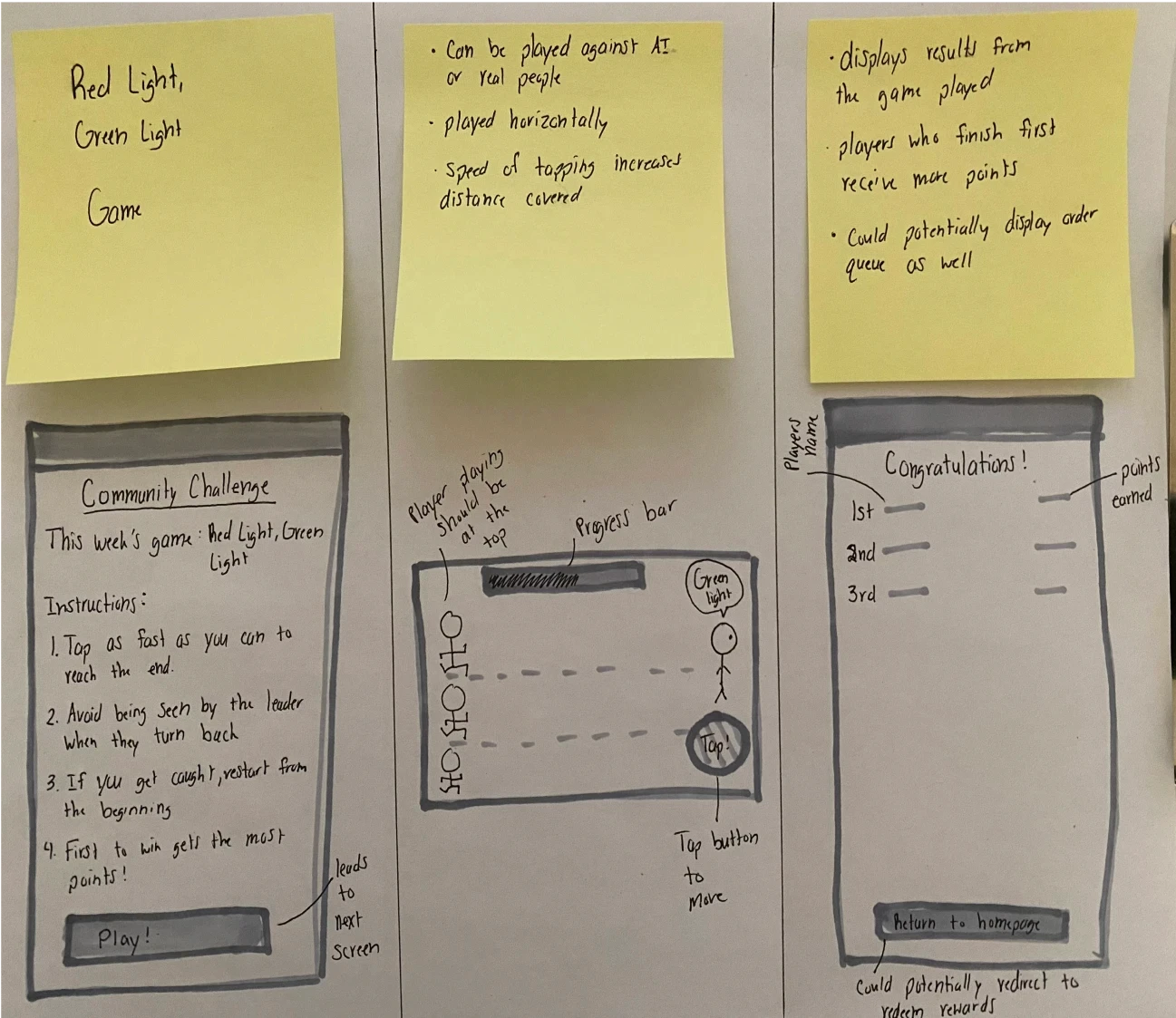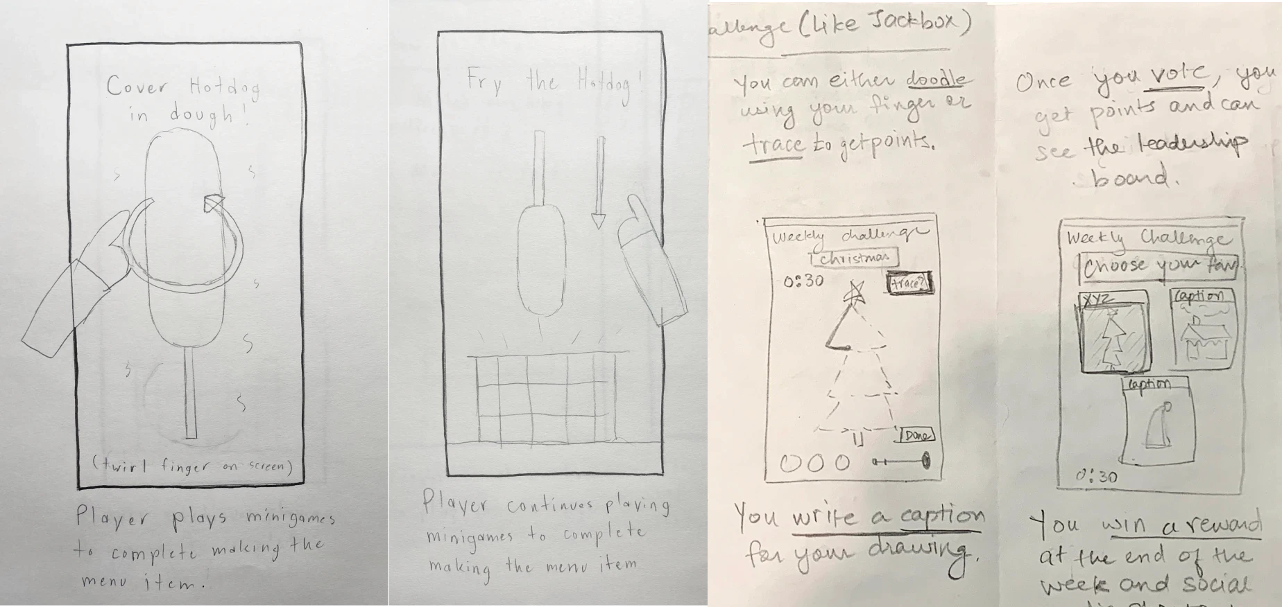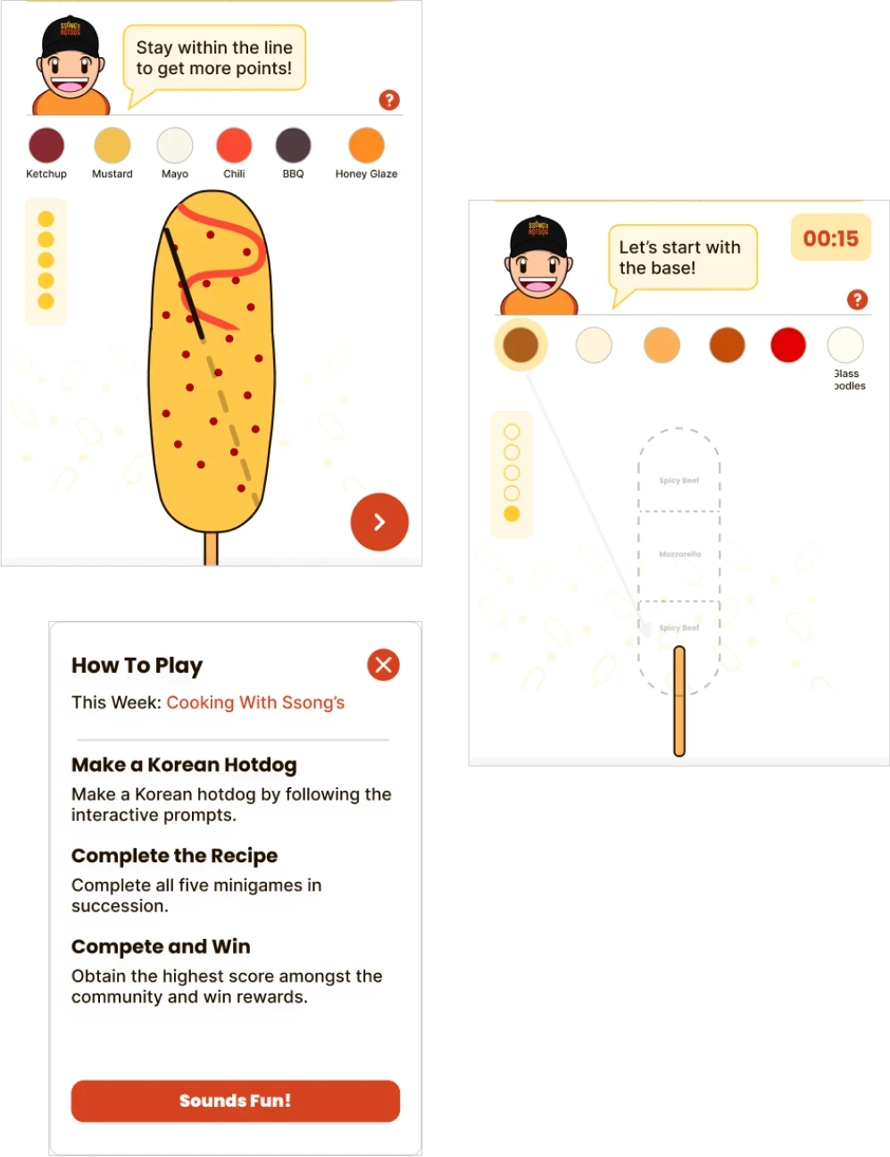 From the expert interview with the marketing team and the client, we identified two trending themes on Ssong’s Instagram - Korean culture and the Cooking process at Ssong’s. We sketched two ideas each with these themes in mind and collectively prototyped three sketches. I worked on the Cooking w Ssong's game.
