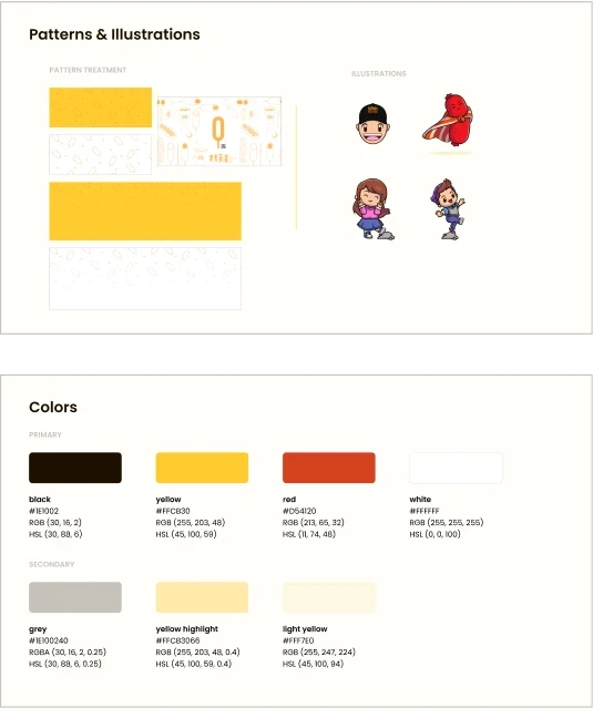 Handoff: Composing a design system including a style guide and compiling research documentation.