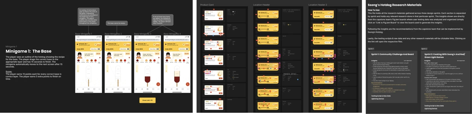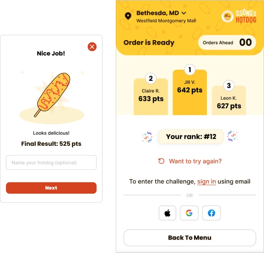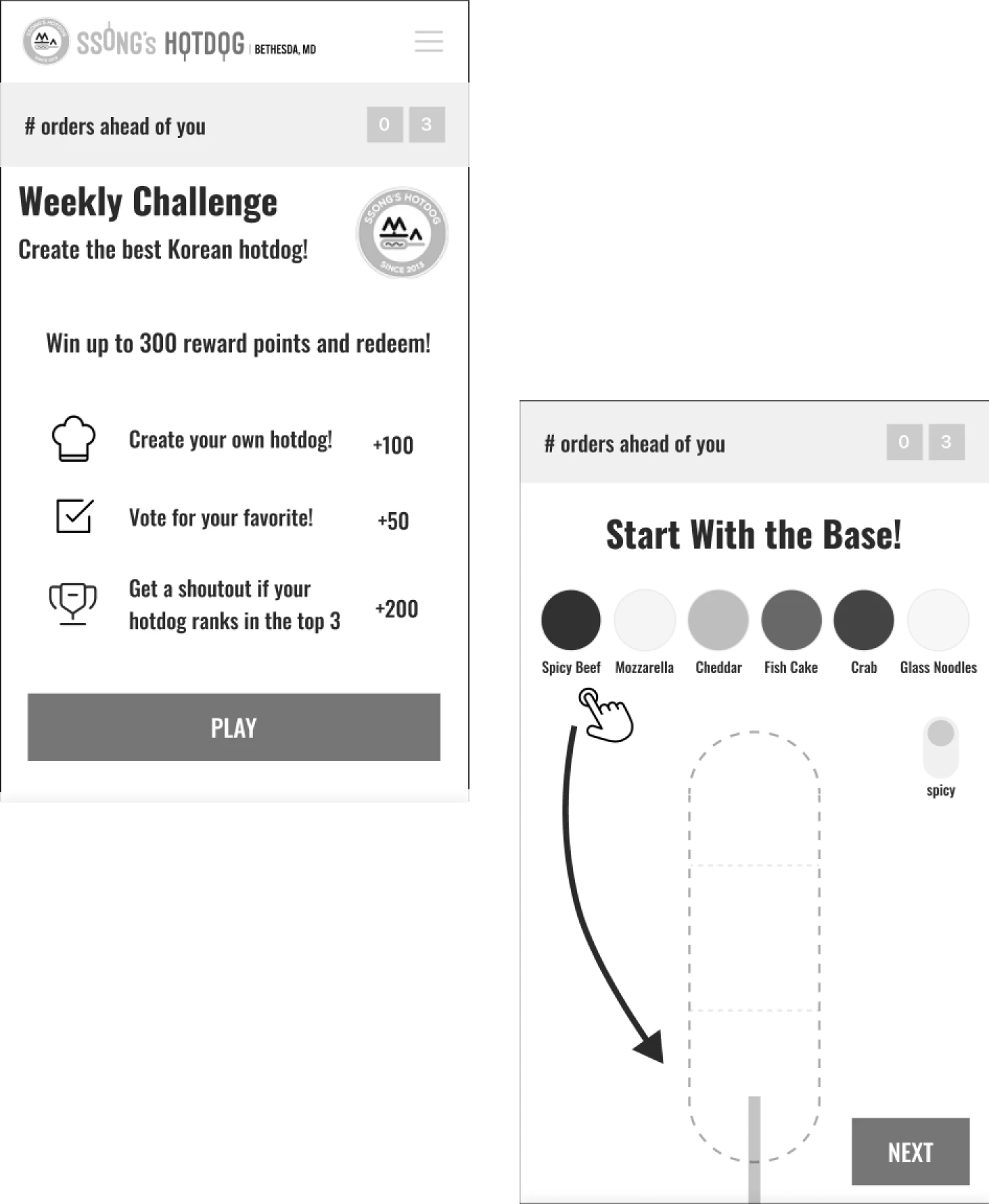 We iterated on the overall flow. I worked on the Menu and the location flow and contributed to the overall design system. As the preference between the games was close, the client chose to offer both games on a weekly rotation. I worked on the ideation and prototyping of Cooking w Ssong’s.
