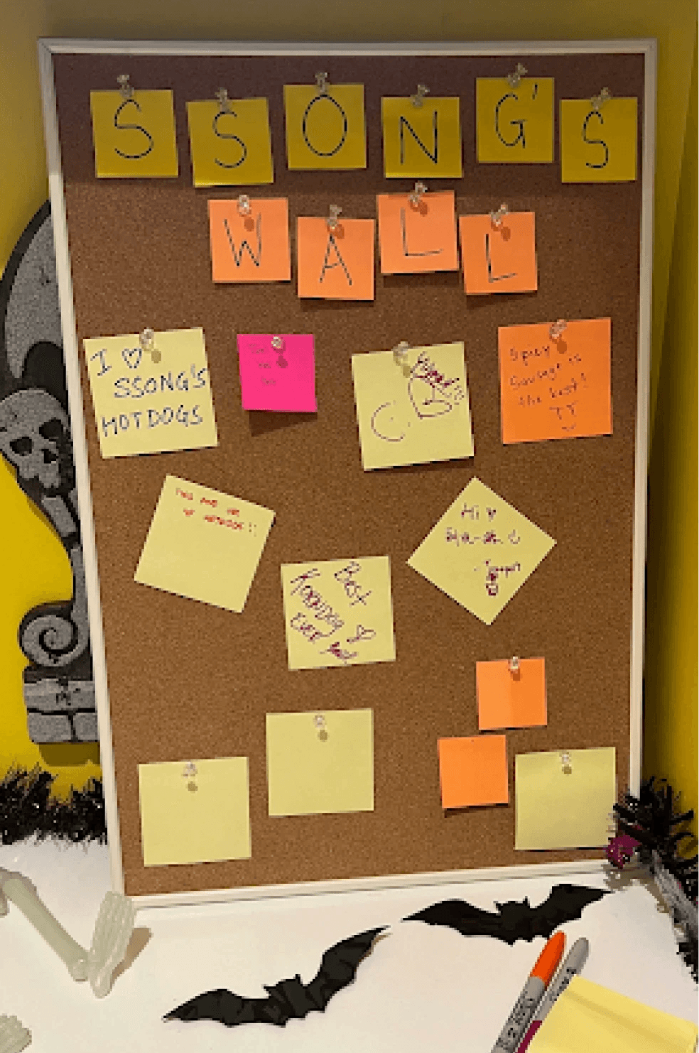 The first solution we voted on was my idea of a ssong’s wall - an interactive board where the customers can leave comments, doodles, and memorabilia.